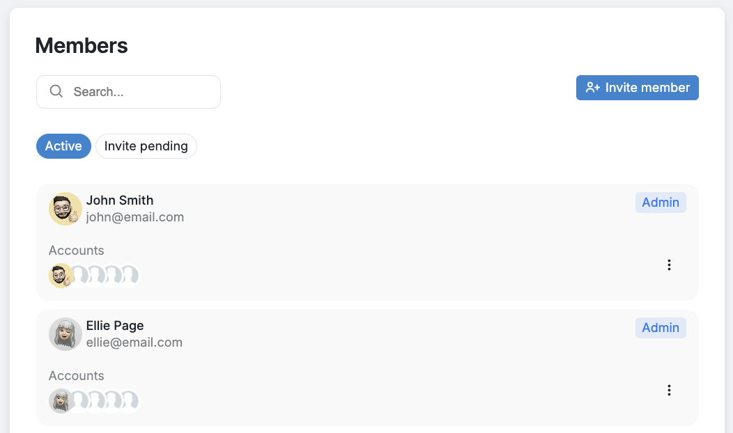 The Members tab lets you view all workspace members and manage their permissions (if you’re an admin). Here, you can also invite new users or update existing members’ roles.