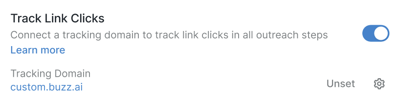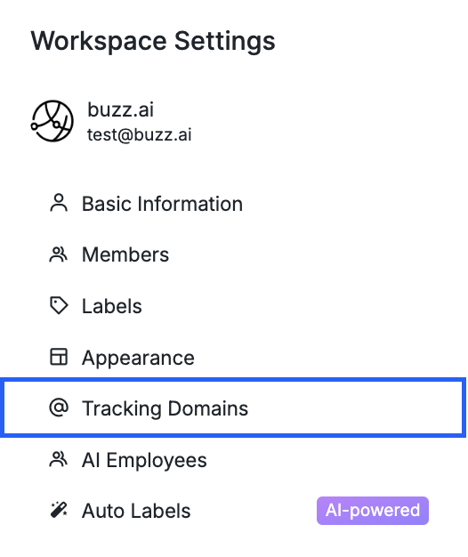 3. Enter the domain you want to use for tracking (e.g., tracking.buzz.ai) in the Tracking Domain field.