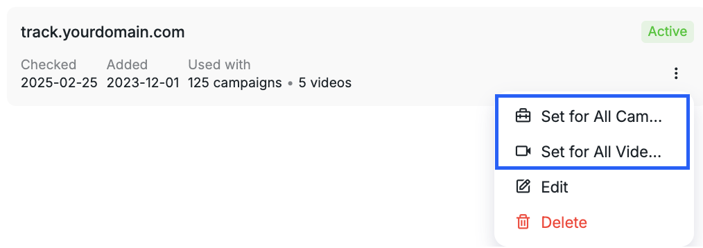 Set for All Videos: Ensures all videos are sent using the tracking domain.