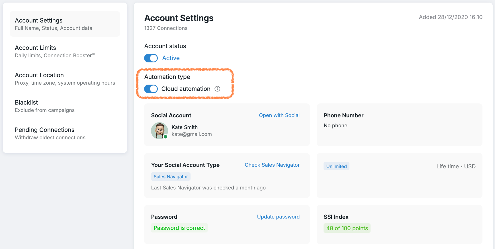 ⚠ If you disable Cloud Automation, any tasks currently running in the cloud will stop executing (all the steps including Social Platform steps will be skipped).