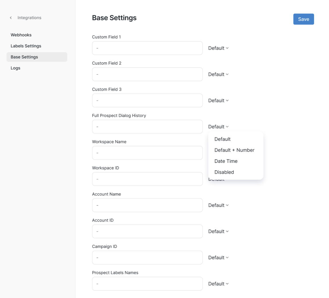 Base Settings let you configure how data about your prospects is pulled from Buzz.