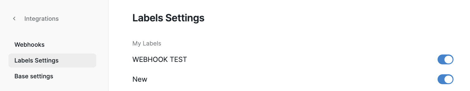 In Label Settings, you can select which labels will trigger a webhook by toggling them on or off.