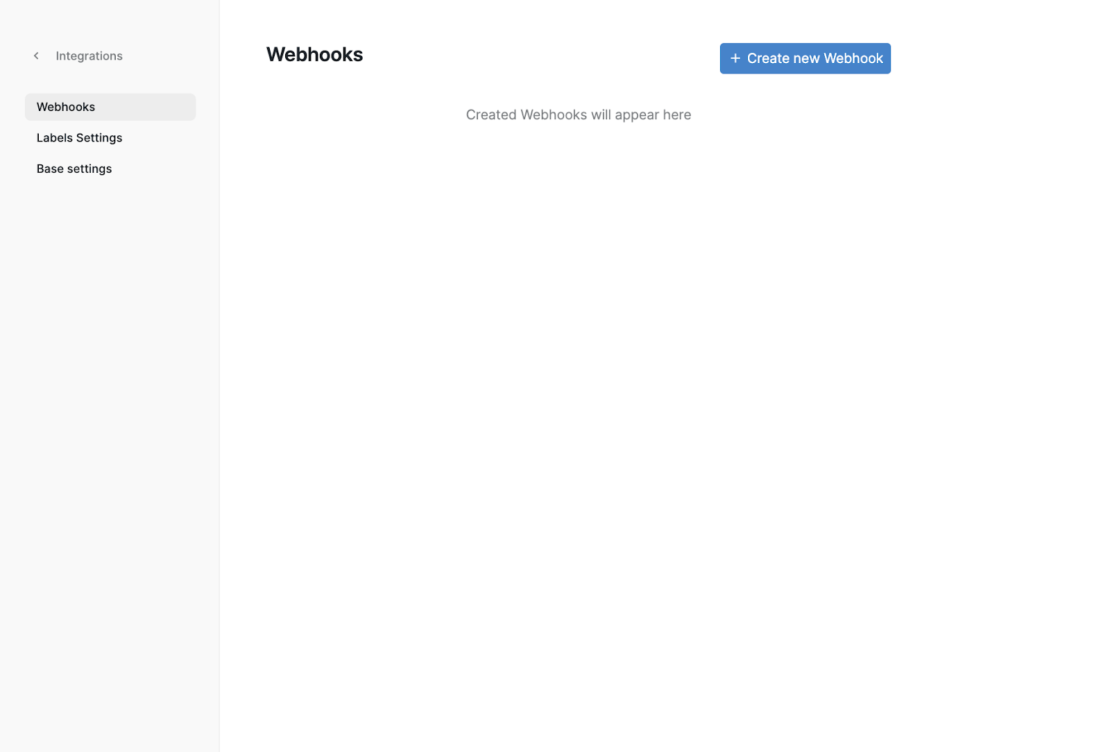 You will be directed to a page with three tabs: Webhooks, Label Settings, and Base Settings.