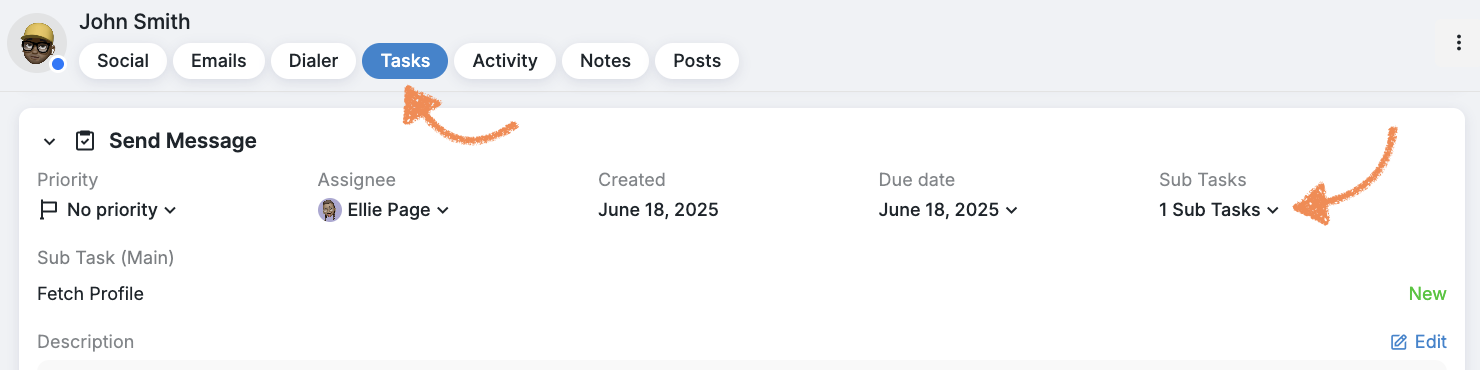 Select the prospect you're interested in, open your conversation with them, then click on Tasks in the top dashboard. From there, simply expand the subtask section within any listed task to see the details.
