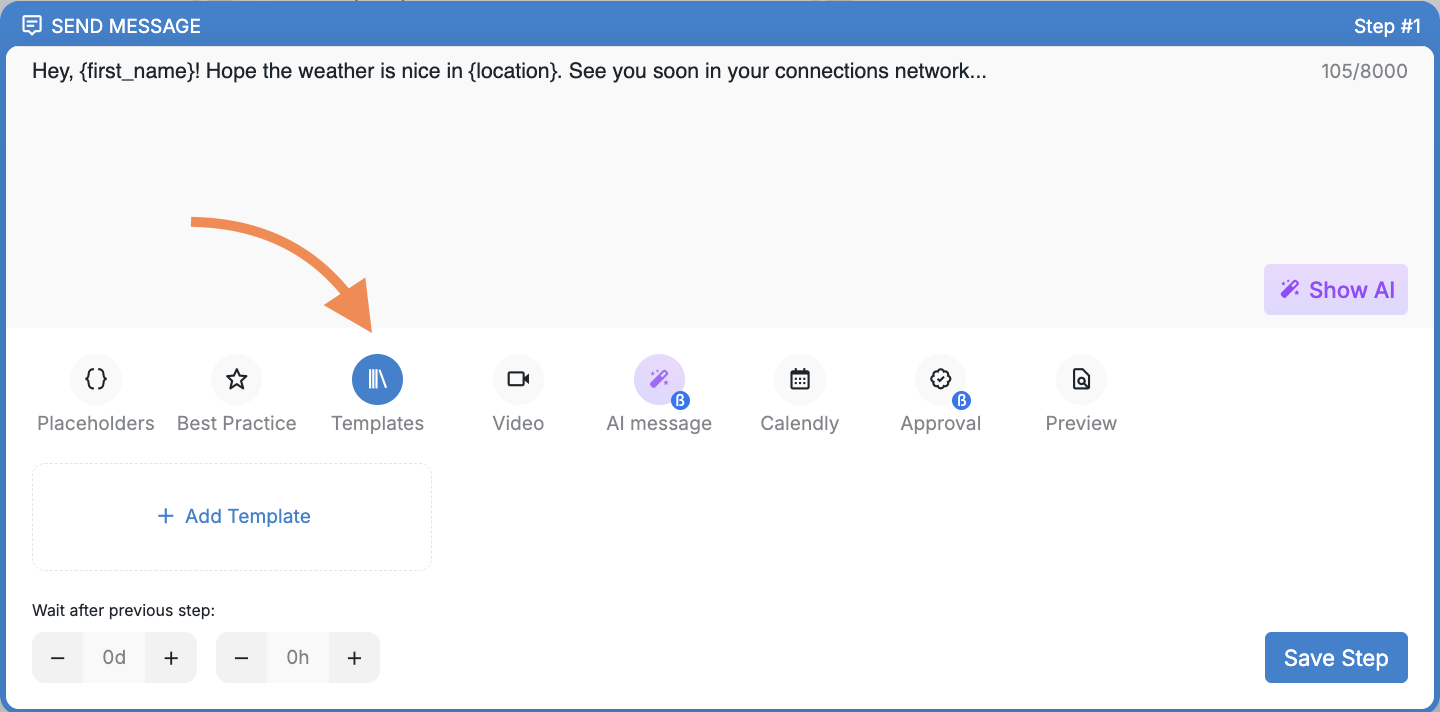 3. When it’s time to add your actions, select your desired action and click on Templates > Add Template.
