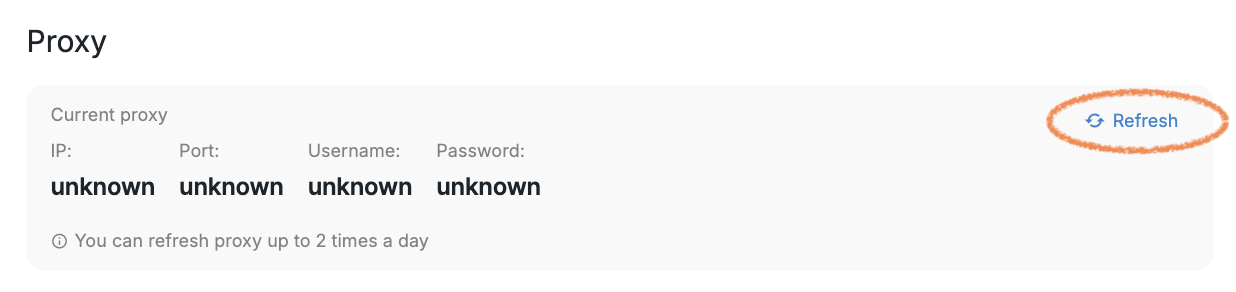 Buzz-managed proxies can only be refreshed twice per day during your working hours. You can refresh it by going to the Settings tab > Account Location: