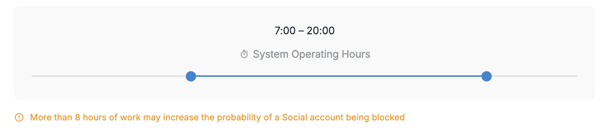 Keep your campaign hours within 8 hours per day. Longer activity windows can raise the Social Platform’s suspicion. We’ll warn you if you try to exceed that.
