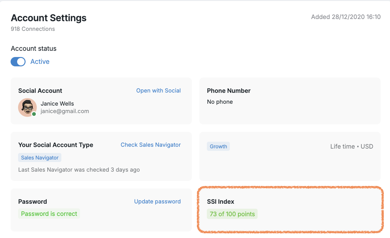 Your Social Selling Index, or SSI, is the Social Platform's way of rating how well you're using the platform. And here's the thing: The Social Platform actually rewards higher SSI scores with more generous limits and less scrutiny on your activity.
