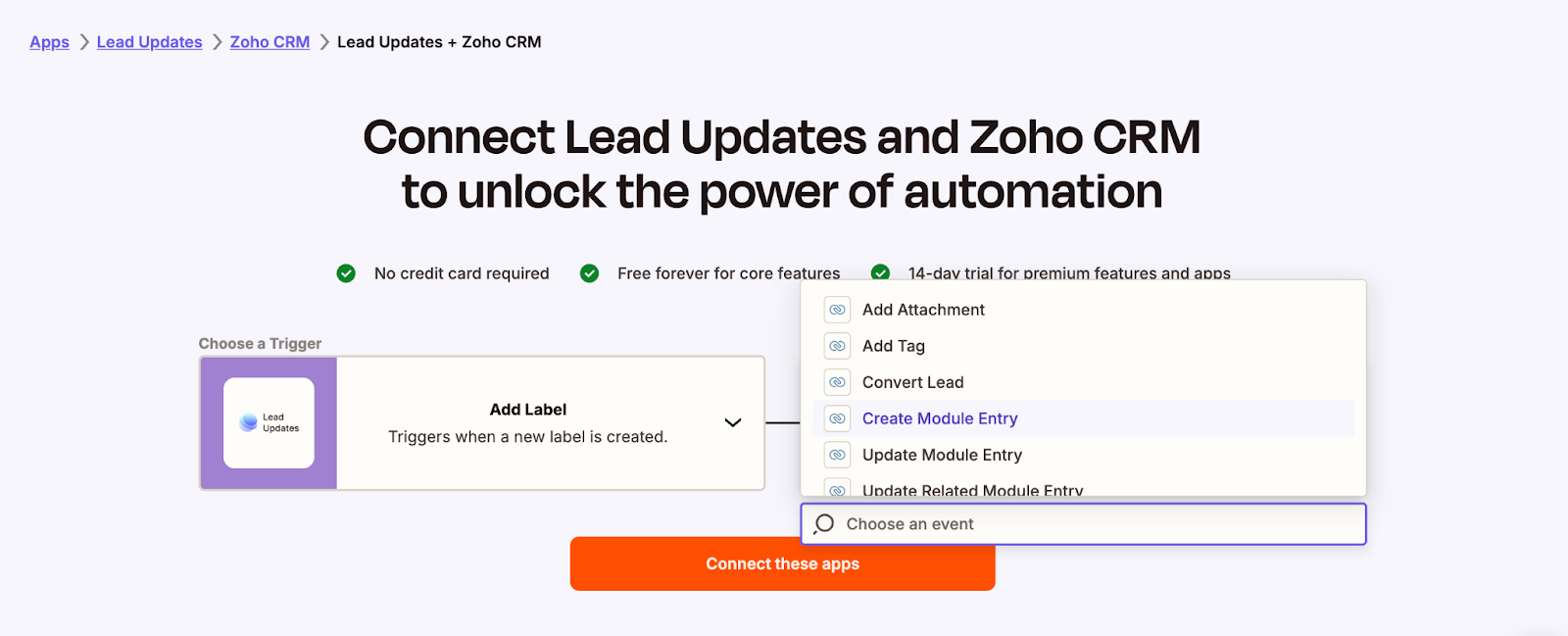 Zoho CRM is a powerful platform that centralizes your sales, marketing, and customer support operations. With Buzz, you can easily integrate Zoho CRM into your workflow using Zapier, allowing you to automate actions between the two platforms.
