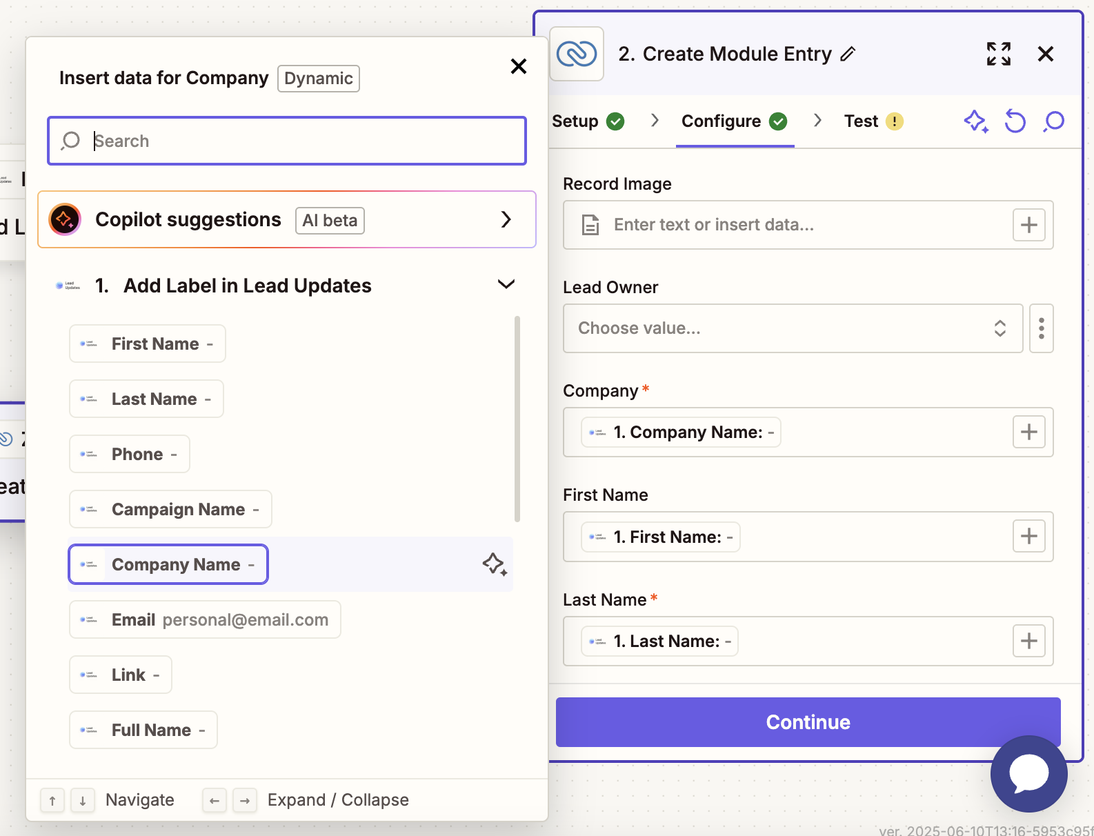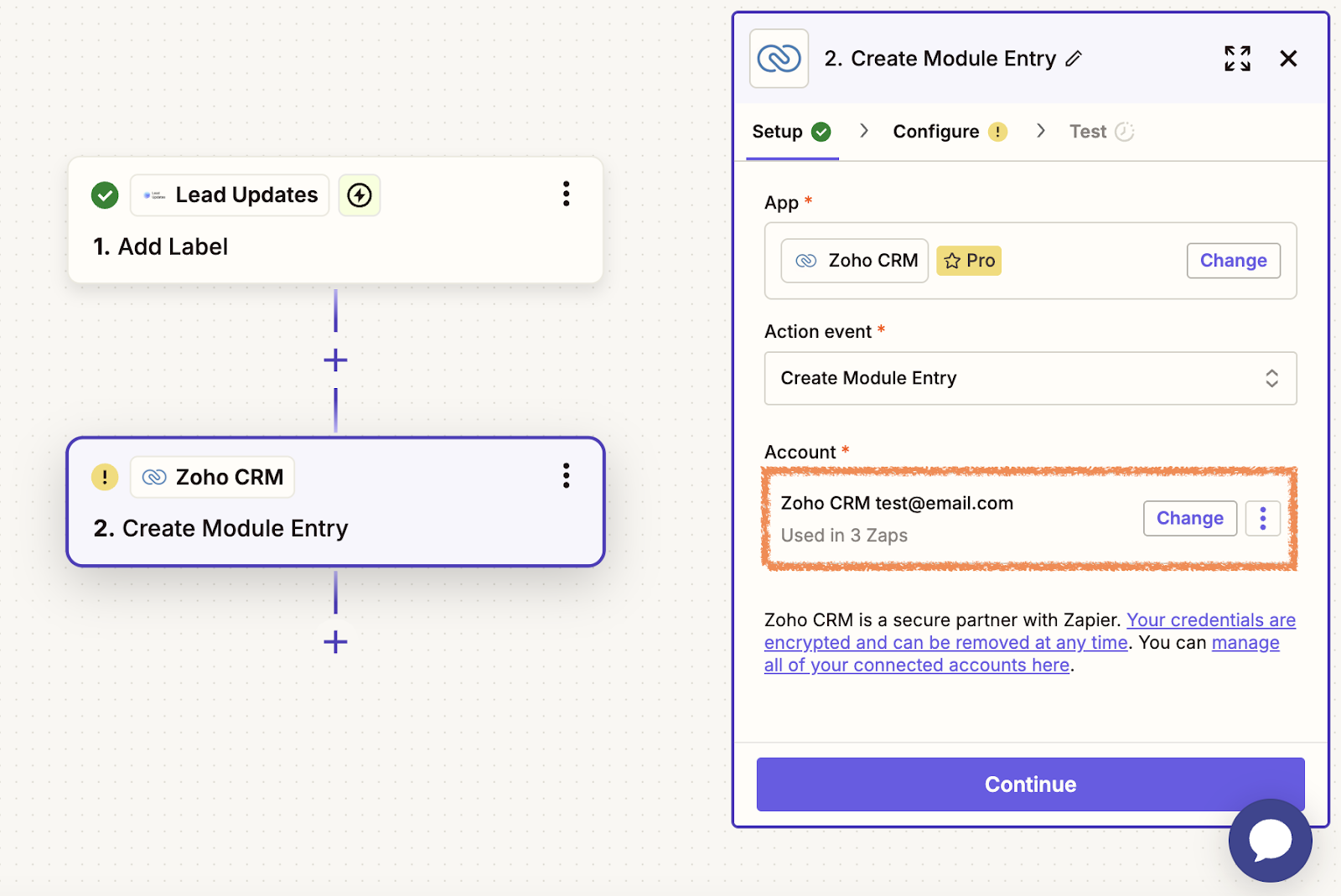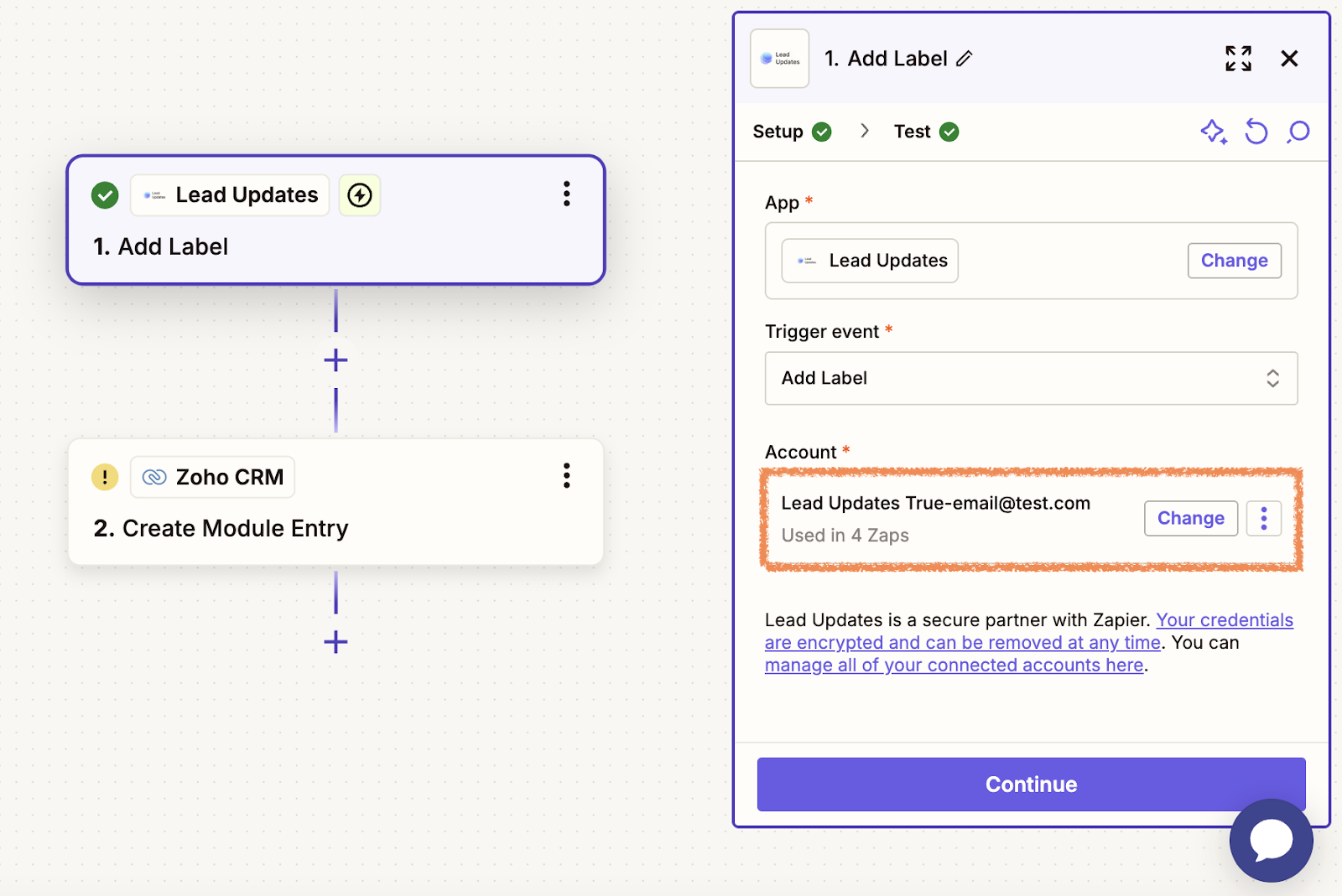 3. Click Continue, then Test Step, and finally, Publish your Zap.