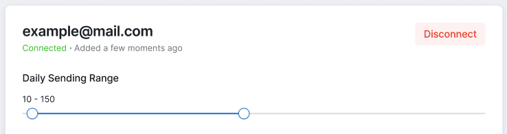 For each connected mailbox, you can set a unique daily sending range. To configure it, navigate to Mailboxes, select the desired mailbox, and adjust the range to your preference. This range will apply only to the selected mailbox.