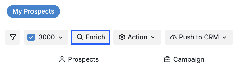 Manually select the prospects you wish to enrich, or use the checkbox at the top of the page to mass-enrich multiple prospects.